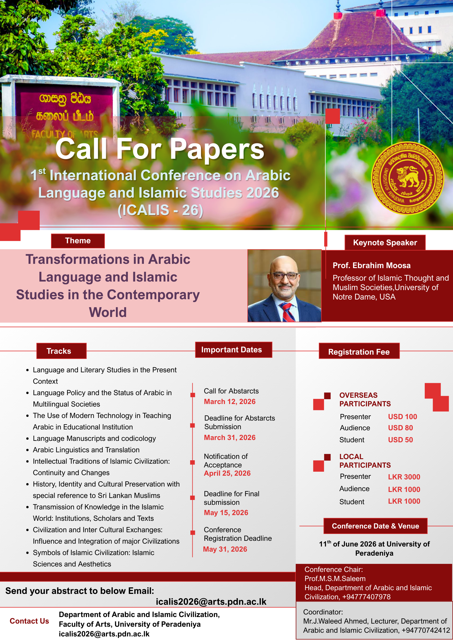 The Department of Arabic & Islamic Civilization is one of the oldest departments of the University of Peradeniya. It was established as a department in the Faculty of Oriental Studies in 1945. Islamic Civilization was introduced as a subject in the department of Arabic in 1969.